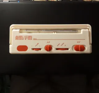 Radio vintage Moulinex con AM e FM. Disegno classico e funzionale dai colori bianco e rosso. - Radio portatile con 2 altoparlanti. - manopole del volume, della sintonia, e tasto accensione e spegnimento colore rosso. - Alimentazione a batterie Funziona perfettamente.