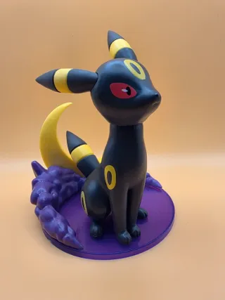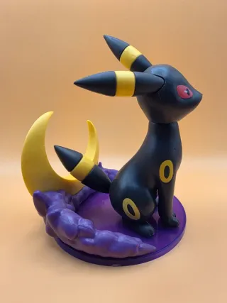 Spettacolare action figure di Umbreon, evoluzione notturna di Eevee, perfetta per collezionisti delle Eevolutions o per decorare un gaming setup. Umbreon è in posa fiera su una base diorama viola traslucida con luna gialla e nuvole notturne in rilievo. Realizzata in PVC di alta qualità con finitura nera opaca soft-touch, liscia e setosa, che esalta i cerchi gialli dall’effetto luminoso. Dimensioni generose, grande presenza scenica. Condizioni pari al nuovo. Spedizione con imballaggio super protettivo.