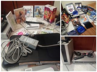 Wii con 7 giochi/sport balance e telecomandi, come da foto Play station 2 con 9 giochi con 2 consolle come da foto e Home Cinema come da foto.
