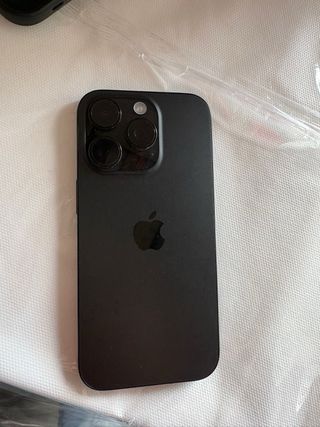 Smartphone Apple iPhone 16 Pro di colore nero. - Tripla fotocamera posteriore. - Logo Apple inciso sul retro.