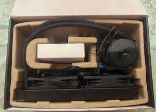 Dissipatore a liquido per CPU Itek Evoliq 240 V2 con illuminazione ARGB. Aperto solo per provare se tutto era funzionante. - Supporto TDP 250W - Piastra fredda in rame senza ossigeno - Pompa a tre fasi ultra silenziosa con 12 bobine e 10 poli