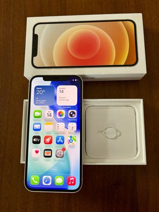 iPhone 12 in color bianco con 64GB di memoria. - con cavo caricabatterie originale e cover Nera. - Usato ma tenuto molto bene senza graffi come da foto. - Versione IOS 26.0.1, batteria e schermo originali. - SIM lock sbloccato. - originale Apple Italia.