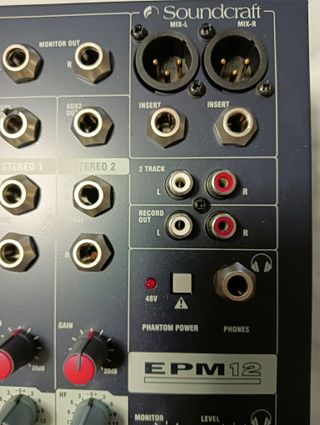 Mixer Soundcraft EPM 12, ideale per studi di registrazione o live. - 12 canali mono/stereo - Uscite Monitor Out e Aux 2 Out - Ingressi Insert - Connessioni 2 Track e Record Out - Alimentazione Phantom Power 48V - Uscita Phones