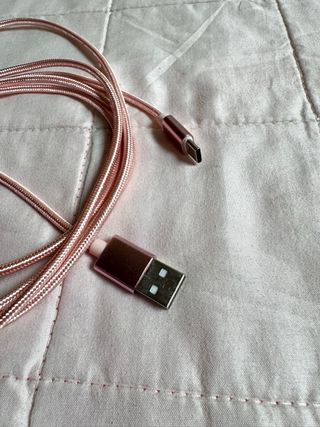 Cavo USB di colore rosa, ideale per la ricarica e il trasferimento dati. - Finitura intrecciata resistente. - Connettore USB standard. - Connettore USB-C. Cavo di ricarica USB con rivestimento in tessuto color rosa metallizzato e connettore USB-C. 📏 Lunghezza 2 m. Nuovo, mai usato. Comprato su Amazon. Accetto offerte ✅🍀