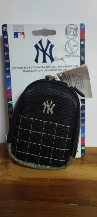 Custodia per fotocamera digitale o digicamera, con logo New York Yankees. - Tracolla inclusa (neckstrap). - Design a scacchiera con cuciture a contrasto.