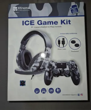 Kit Xtreme per PS4 con controller e cuffie. - Controller wireless Bluetooth. - Cuffie con microfono. - Cavo di alimentazione incluso. - 2 Thumbstick inclusi.