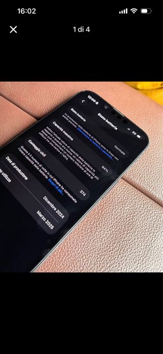 iPhone 16e con batteria al 94% di capacità massima. Ottime condizioni con scatola e fattura amazon - Capacità massima: 94% - Cicli di ricarica: 374 - Data di produzione: Dicembre 2024 - Data di utilizzo: Marzo 2025