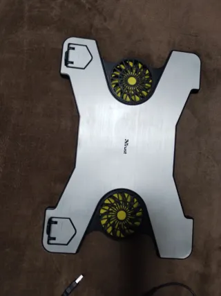 Supporto universale per notebook con due ventole integrate per un raffreddamento efficace. La superficie è in metallo con dettagli in plastica nera. - Design universale compatibile con la maggior parte dei notebook. - Due ventole per un'ottima dissipazione del calore. - Piedini antiscivolo per una maggiore stabilità. - Progettato per elevare lo schermo del notebook a un'altezza e una distanza visive ergonomiche. Cavo USB incluso.