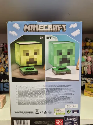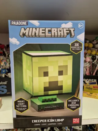 Lampada icona Creeper di Minecraft, perfetta per gli appassionati del gioco. La lampada presenta un design a blocchi ispirato al mondo di Minecraft. - 3 impostazioni di luminosità - Funzione luce notturna con spegnimento automatico dopo 20 minuti - Include porta di ricarica USB