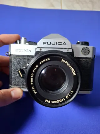 Macchina fotografica analogica Fuji STX-1N con obiettivo X-Fujinon 50mm f/1.8. - Obiettivo macro 1:8. - Include soffiatore e tappi. - Filtri per obiettivi inclusi. - E altri gadget.
