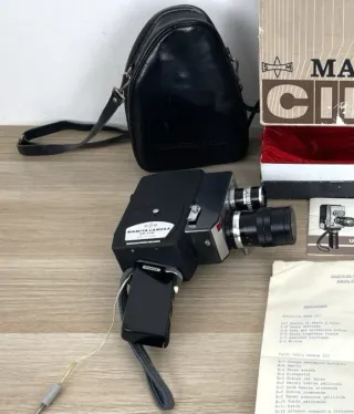 Cinepresa Mamiya Zoom S8, prodotta in Giappone durante gli anni 70 del XX sec, dotata di obiettivo Mamiya f=10mm-30mm, Dotata di scatola di cartone originale Mamiya Cine, libretto di istruzioni, traduzione delle istruzioni battuta a macchina, custodia di pelle sintetica nera logata con tracolla e manico removibile con cavetto. La cinepresa si presenta in buono stato di conservazione, considerando il tempo trascorso, visionare attentamente tutte le fotografie nel dettaglio. Funzionamento a batterie AA (non incluse). Testata con batterie, la cinepresa si accende. Non è stata testata con pellicola. VISTO E PIACIUTO