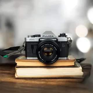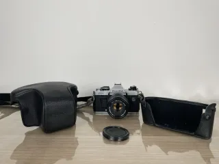 Fotocamera analogica reflex Fujica AX-1, 35mm prodotta in Giappone nel 1979. Colore nero. Dotata di custodia originale, tracolla e coperchio per l'obiettivo. Si vende compresa di obiettivo Fujinon f=50mm FM.La fotocamera si presenta in buono stato di conservazione, visionare attentamente tutte le fotografie nel dettaglio.Non è stata testata con pellicola; la meccanica è funzionante.Articolo conforme a descrizione e foto. Si vende con formula visto e piaciuto a collezionisti ed amatori.