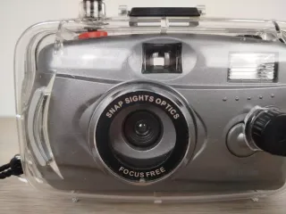Fotocamera subacquea Snap Sights, prodotta in Giappone negli anni 90, utilizzata per attività come snorkeling, immersioni e altre esperienze acquatiche. Colore grigio scuro con protezione in plastica intatta.La fotocamera si presenta in buono stato di conservazione, visionare attentamente tutte le fotografie nel dettaglio. Non è stata testata, si presenta in buone condizioni e nulla sembra precluderne il funzionamento. VISTO E PIACIUTO.