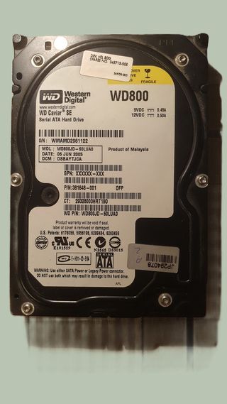 In condizioni perfette Hard disk Western Digital WD800 Caviar SE. Per chi vuole spendere poco e una memoria aggiuntiva - Modello: WD800JD-60LUA0 - S/N: WMAMD2961122 - Prodotto in Malesia - Interfaccia SATA