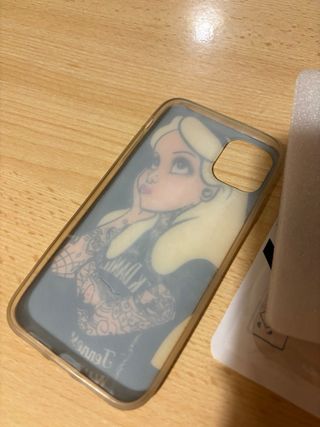 Cover per iPhone 11 con un design unico di Alice in Wonderland rivisitata in stile tattoo. - Stampa dettagliata su sfondo nero. - Design ispirato ad Alice con tatuaggi. - Materiale resistente per proteggere il telefono.