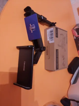 Supporto da tavolo flessibile per smartphone e tablet. Ideale per diverse posizioni. - Colore: Bianco - Lunghezza braccio: circa 70 cm - Larghezza supporto: 12-19 cm - Spessore piano d'appoggio: fino a 7 cm - Rotazione 360°