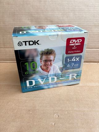 Confezione da 10 dischi DVD-R TDK. Nuovo imballato - Capacità 4.7 GB. - Velocità di scrittura 1-4x.