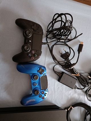 Console PlayStation 4 Pro con disco rigido da 1TB e controller DualShock incluso. Presenta cavo alimentazione e cavo hdmi originali, manca il cavo di ricarica del controller.