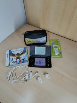 Console Nintendo DSi nera con gioco Il Regno di Ga'Hoole. La console è in discrete condizioni ma perfettamente funzionante, il circuito di lettura SD è nuovo. Include custodia protettiva, cavo di ricarica USB e accessori. - Console Nintendo DSi - Gioco Il Regno di Ga'Hoole - Custodia protettiva Pokémon - Cavo di ricarica USB - Accessori aggiuntivi