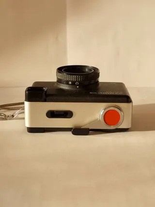 Fotocamera compatta Agfamatic 108. - Design grigio e argento. - Obiettivo Agfa Color Solitar.