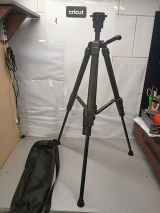 Treppiede nero, ideale per supportare fotocamere o altri dispositivi. - Materiale: metallo e plastica. - Colore: nero. - Include borsa per il trasporto.