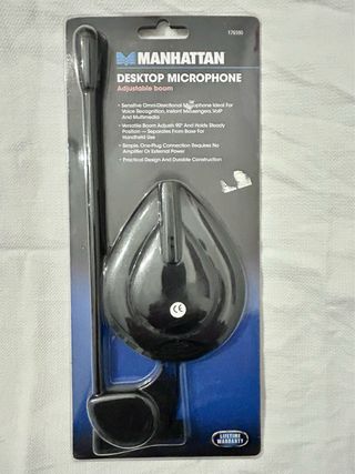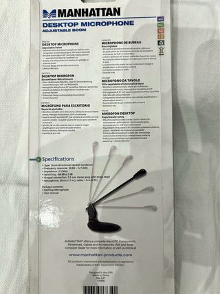 Microfono da scrivania Manhattan con braccio regolabile. Ideale per comunicazioni e multimedialità. - Microfono omnidirezionale sensibile. - Braccio versatile regolabile a 90°. - Connessione plug-and-play semplice. - Design pratico e costruzione durevole.