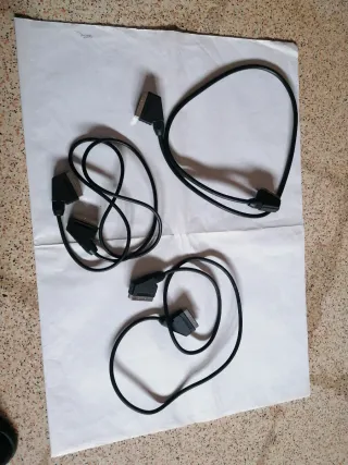 Set di tre cavi con connettori SCART. - Cavo SCART con due connettori. - Cavo SCART con due connettori. - Cavo SCART con due connettori. Il prezzo si riferisce al totale dei prodotti!