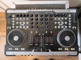 Controller per DJ American Audio VMS4. - Mixer a 4 deck. - Funzioni MIDI e audio integrate. - Jog wheel sensibili al tocco. 4 Canali MIDILOG (compatibile con qualsiasi software "MIDI Learn" o ingressi analogici come lettori CD, giradischi, etc) DSP D-Core: Motore di qualità da studio + circuitazione Pro Stage Microphone 2 Ingressi Mic con Controlli Gain, Treble, Mid e Bass Regolazione della curva crossfader Uscite XLR bilanciate Touch Strip assegnabili Mouse pad integrato Scheda audio 4 In/ 4 Out In bundle con il software Virtual DJ LE MIDI Controller con 4 canali MIDILOG USB/Analogici selezionabili (MIDI e analogico)