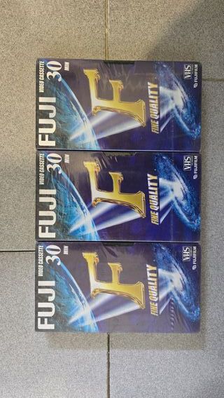 Confezione da tre cassette VHS Fuji Fine Quality. - Durata: 30 minuti per cassetta. - Formato: VHS. - Marca: Fuji.