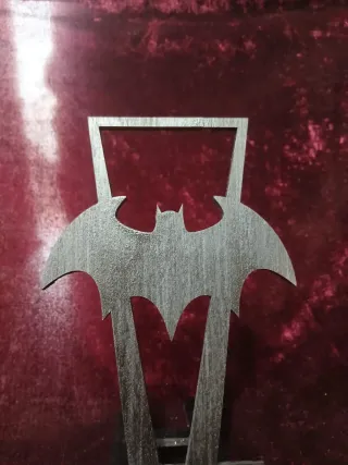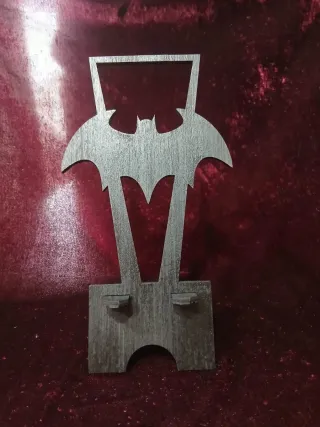 Supporto da tavolo per smartphone in stile gotico. - Design unico a tema pipistrello. - Realizzato in legno. - Base stabile con intagli.