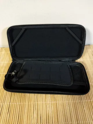 Custodia protettiva nera per Nintendo Switch, con all'interno una pellicola per lo schermo. - Custodia in materiale resistente. - Pellicola protettiva per lo schermo con filtro luce blu e trattamento antibatterico. - Compatibile con Nintendo Switch.