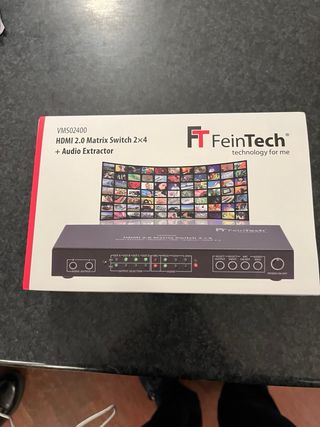 Commutatore HDMI 2.0 Matrix Switch 2x4 con estrattore audio. - Modello: VMS02400 - Risoluzione: HDMI 2.0 - Funzionalità: Matrix Switch 2x4 + Audio Extractor - Marca: FeinTech