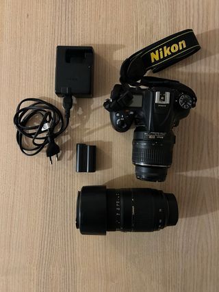 Se vende cámara réflex digital Nikon D7200 con lente Nikon 18-55 junto con un objetivo Tamron 70-300. - Cuerpo de cámara Nikon D7200 - Objetivo Tamron 70-300mm - Cargador de batería - Batería original - Correa para el cuello