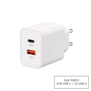 Caricabatterie USB Dual 45W USB-C + USB-A