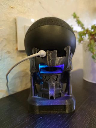 Original porta Alexa amazon echo dot 4/5 generazione con un design ispirato a Terminator. Un pezzo unico per gli appassionati. - Materiale: Plastica stampata in 3D. - Colore: Nero. - Stile: Futuristico e dettagliato.