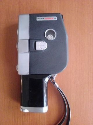 Cinepresa 8 mm Fujica Single-8 P1. Prodotta da Fuji tra il 1965 e il 1977. Obiettivo Fujinon 1.8/11.5 mm. f/1.8, mirino ottico a visione diretta con indicazione dell'esposizione; motore elettrico per esposizione automatica; impugnatura a pistola. In buone condizioni, testata perfettamente funzionante con custodia in pelle originale.