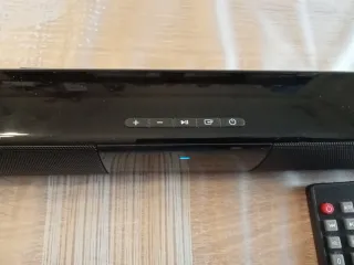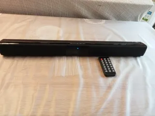 Soundbar di colore nero, elegante e moderno, ideale per migliorare l'audio del tuo televisore. Viene fornito con il suo telecomando per un facile controllo. - Design sottile e compatto. - ricaricabile. - Telecomando incluso per la gestione delle funzioni.