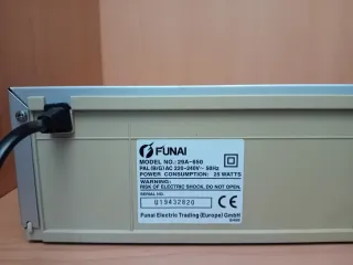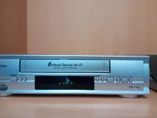 Videoregistratore Funai con 6 testine Stereo Hi-Fi e Digital Auto Tracking. - Funzione AUTO RETURN. - Funzione OTR (One Touch Recording). - Tasto STOP/EJECT. - Tasti REW, PLAY, FFWD. - Logo VHS HQ.
