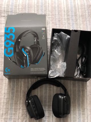 Cuffie da gaming wireless Logitech G935. - Tecnologia LIGHTSYNC RGB. - Audio surround 7.1. - Microfono flip-to-mute. PADIGLIONI APPENA SOSTITUITI IN TESSUTO TRASPIRANTE