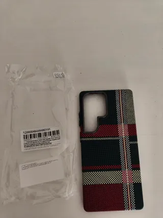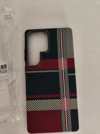 Cover per Samsung S25 Ultra con fantasia a quadri. - Design a quadri in diverse tonalità di rosso, verde e bianco. - Protezione per il tuo smartphone.