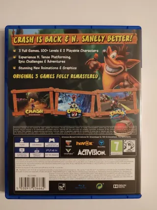 Vendo il videogioco Crash Bandicoot N. Sane Trilogy per PlayStation 4, aperto ma mai usato. - Include 3 giochi originali rimasterizzati. - Include 2 livelli bonus: Stormy Ascent & Future Tense. - Età consigliata: 7+