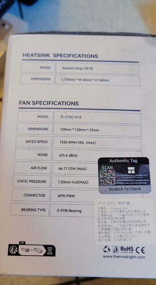 dissipatore Thermalright Assassin King 120 SE, in ottime condizioni. - Modello: Assassin King 120 SE - Dimensioni: 120mm * 46mm * 148mm