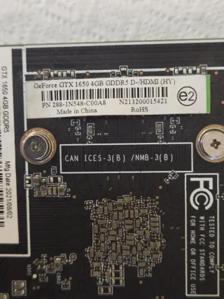Scheda video GeForce GTX 1650 con 4GB di memoria GDDR5. - Design compatto con ventola singola. - Interfaccia PCIe. - Ideale per gaming e applicazioni grafiche.