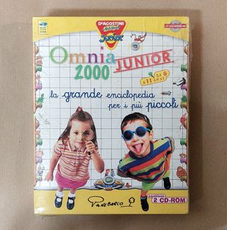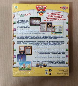Vendo Enciclopedia multimediale Omnia Junior 2000 ancora sigillata, mai aperta. L'enciclopedia è stata prodotta nel 1999 da De Agostini Multimedia. Fa parte della storica collana "Omnia". Questa specifica versione "Junior" è stata realizzata in collaborazione con l'autore Daniele Panebarco ed era pensata appositamente per il livello scolare della scuola primaria. Il prodotto non è mai stato aperto, è avvolto nel cellophane anche se in ha leggermente ceduto da un lato. Garantita compatibilità Windows 95/98. Include 2 CD + manuali e cartolina di registrazione. Il prezzo di vendita era di 99.000 lire. Un raro pezzo da collezione.