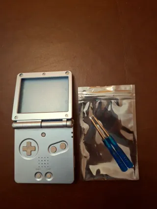 Scocca Gameboy Advance Sp originale blu compreso di viti, copricerniere, pulsanti, membrane + set due cacciaviti per montaggio/smontaggio
