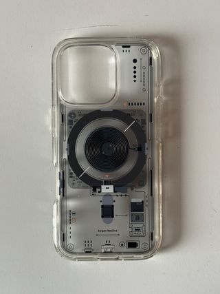 Cover trasparente per iPhone 16 Pro con design ispirato alla componentistica interna. - Materiale trasparente per mostrare il design. - Protezione per il dispositivo.