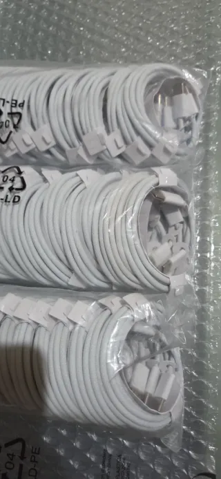 10 cavi per dispositivi Apple usb lightning nuovi mai aperti. I cavi sono di concorrenza e ne posseggo una ventina, in foto si vede il cavo come è sigillato e il cavo che uso quotidianamente (per il mio iphone 11pro). Perfettamente funzionante pur non essendo originale. Per qualsiasi informazione contattemi qui o al mio numero di telefono