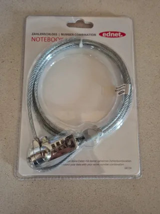Lucchetto con cavo in acciaio per proteggere il tuo notebook. - Combinazione numerica a 4 cifre. - Cavo in acciaio intrecciato.