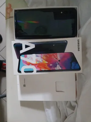 Smartphone Samsung A70 di colore nero, completo di scatola e manuali. - Scatola originale. - Manuale di istruzioni e sicurezza.