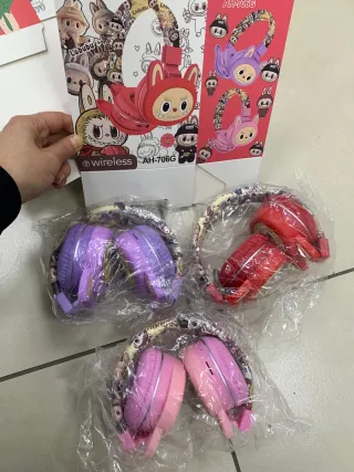 Cuffie wireless con un design divertente e colorato. - Modello: AH-906G - Connessione Bluetooth - Design accattivante con orecchie da gatto - Archetto decorato con personaggi animati